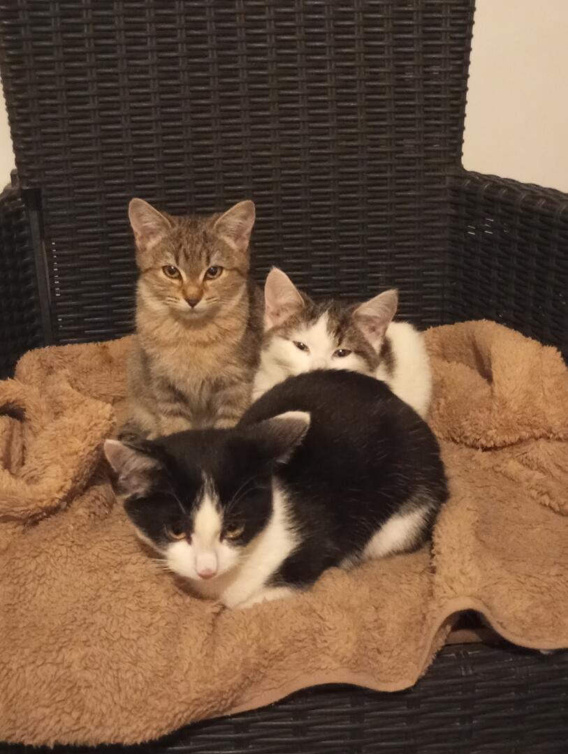 Kotki szukaja domu .mają ok 4 miesięcy . Korzystają z kuwety ,odrobaczone.